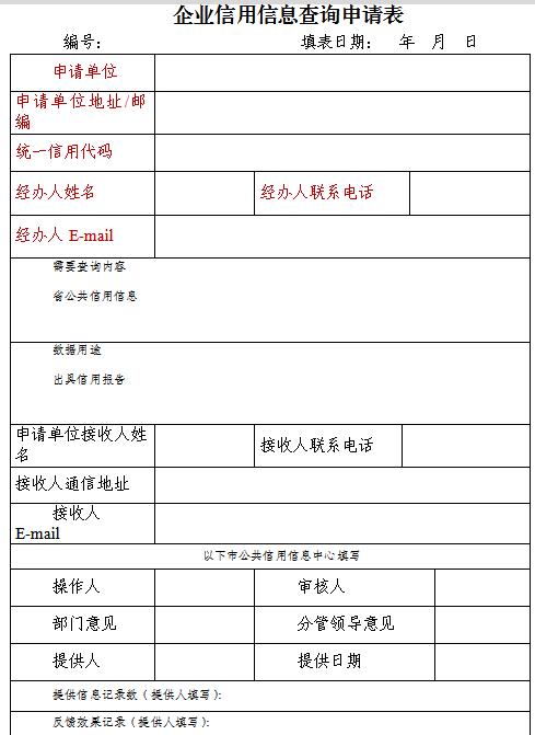 江蘇省企業(yè)信用信息查詢(xún)申請表